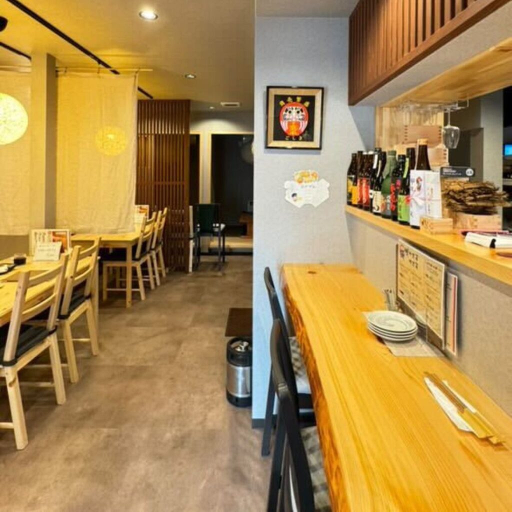 前を通る人の目を引き付けるほど木のぬくもりを感じる穏やかなデザインの外観で、訪れる人の心が癒やされます。 木を基調とした店内で、カウンターに加え個室もあるので一人でも複数人でも食事が楽しめます。