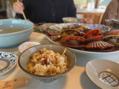 浮橋定食にはご飯は貝の出汁が効いた優しい味の貝めしがついてきます。これまた貝出汁がしっかり効いた、だけど優しいお味の貝めしでした。