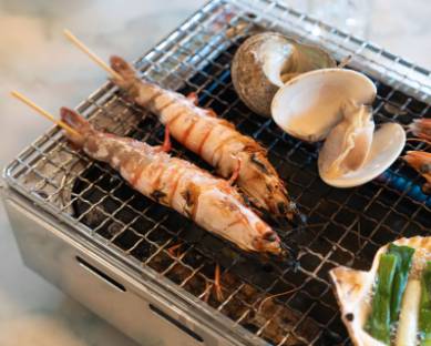 貝を存分に楽しんだあとは有頭エビをいただきました。こんがり焼いた香ばしいエビにかぶりつく幸せをみんなで噛み締めました。