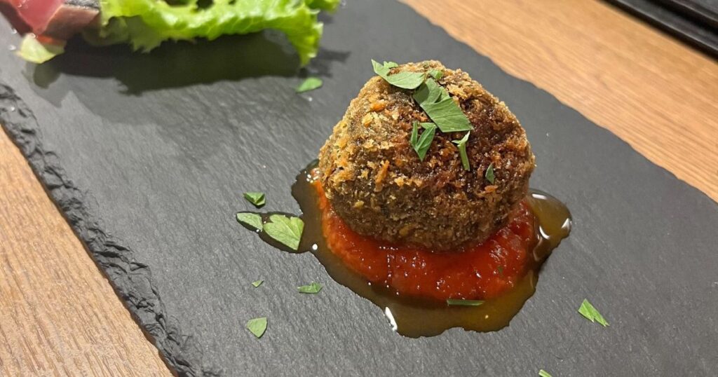 明石ミミイカとイカ墨のアランチーニ (ライスコロッケ)。