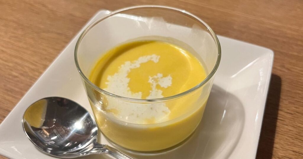 スープは京田辺産の有機栽培のカボチャを用いた冷製ポタージュ。